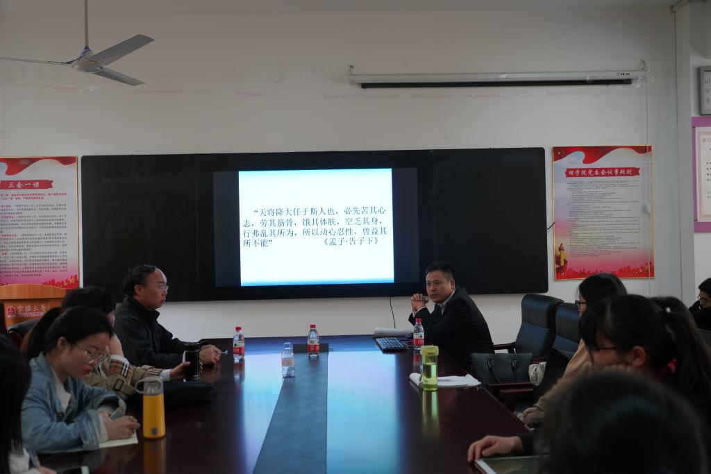 叶老师结合自己十几年的一线从教经验,用脍炙人口的文字向我院数学师范生讲述了“动心、忍性、增益其所不能”的中学数学老师成长经历。作为中学教师,爱心是立教之本,匠心是立身之本,恒心是立业之本,唯有动心才能进步。同时,叶老师也从学科竞赛、职称评比、荣誉奖项、解题编题、终生学习、教育情怀的追求等方面概括了中学数学老师成长的踏板。最后,叶老师鼓励同学们砥砺曾其能,要善钻研善表达,多学多问,敢说敢写敢突破,并寻求适合自己的特色发展道路,不怕失败不言弃,在未来的从业路上绽放自己的光彩。