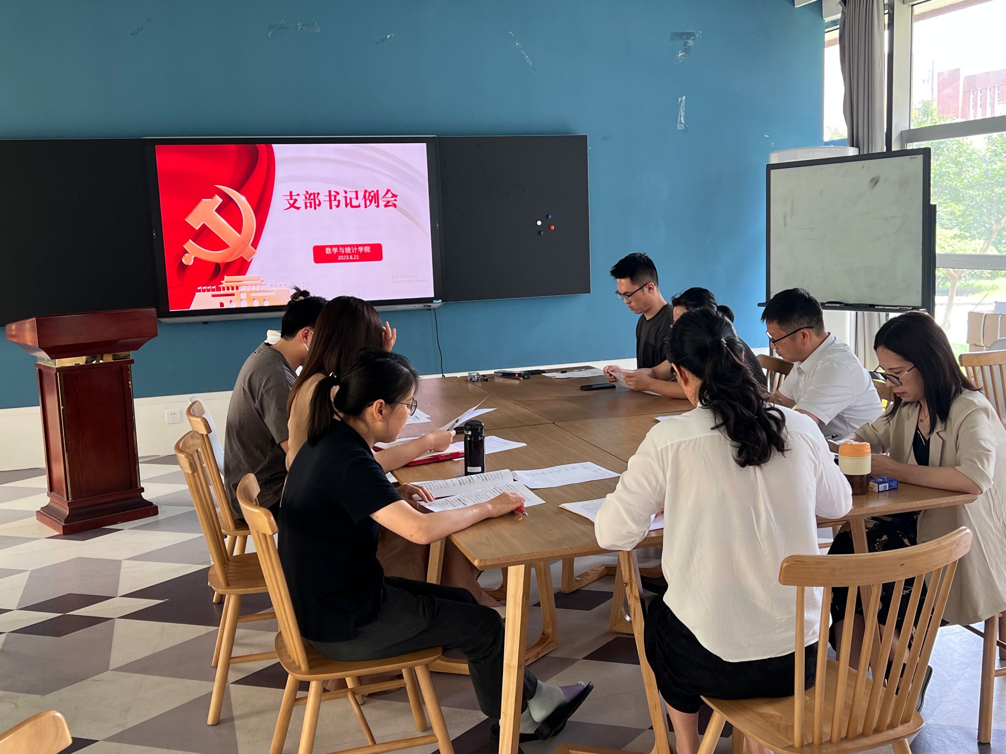 6月21日下午,我院在包玉书九号楼102教室召开本学期第四次支部书记例会,学院党委书记及各基层党支部书记出席会议。
