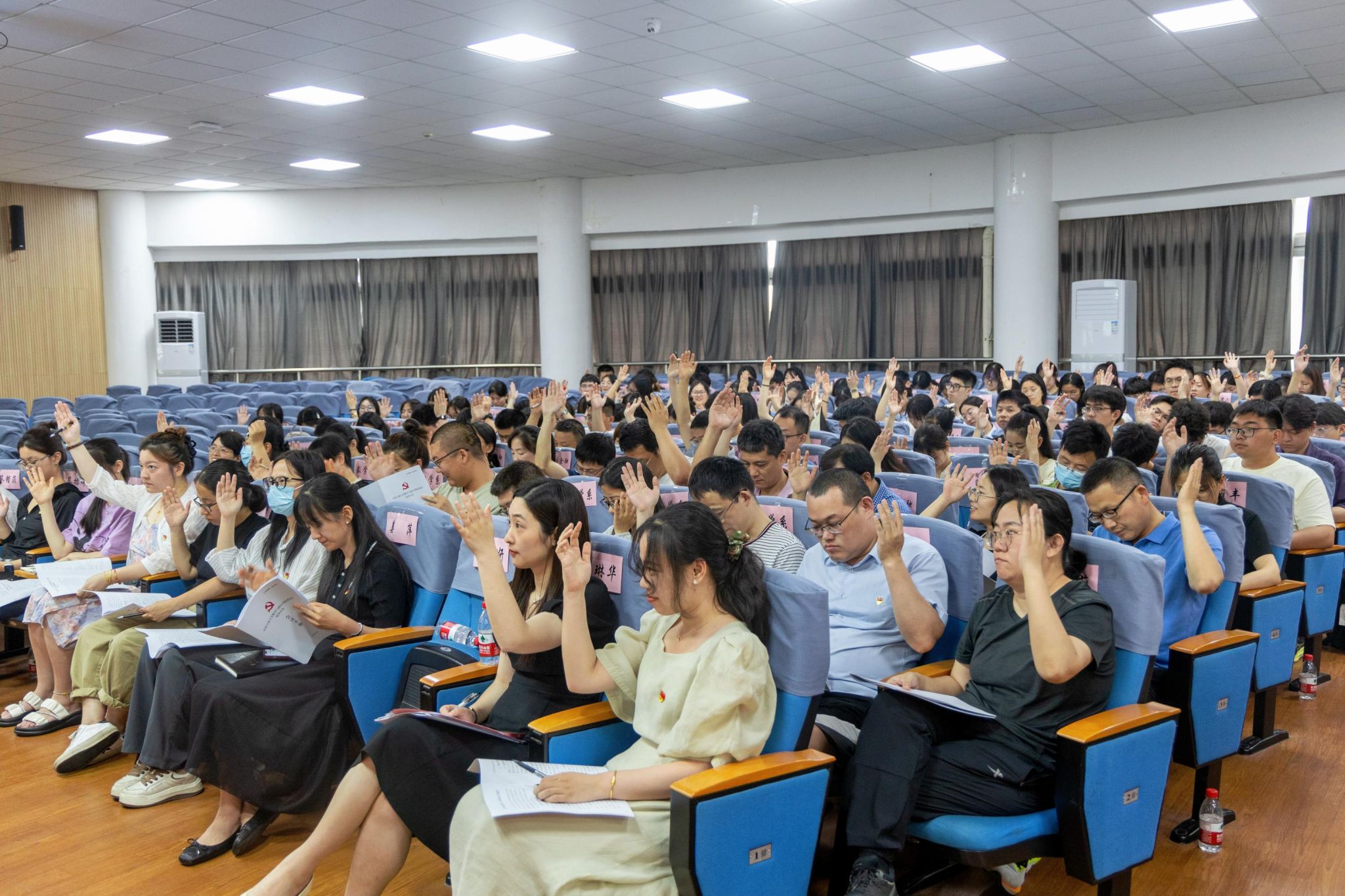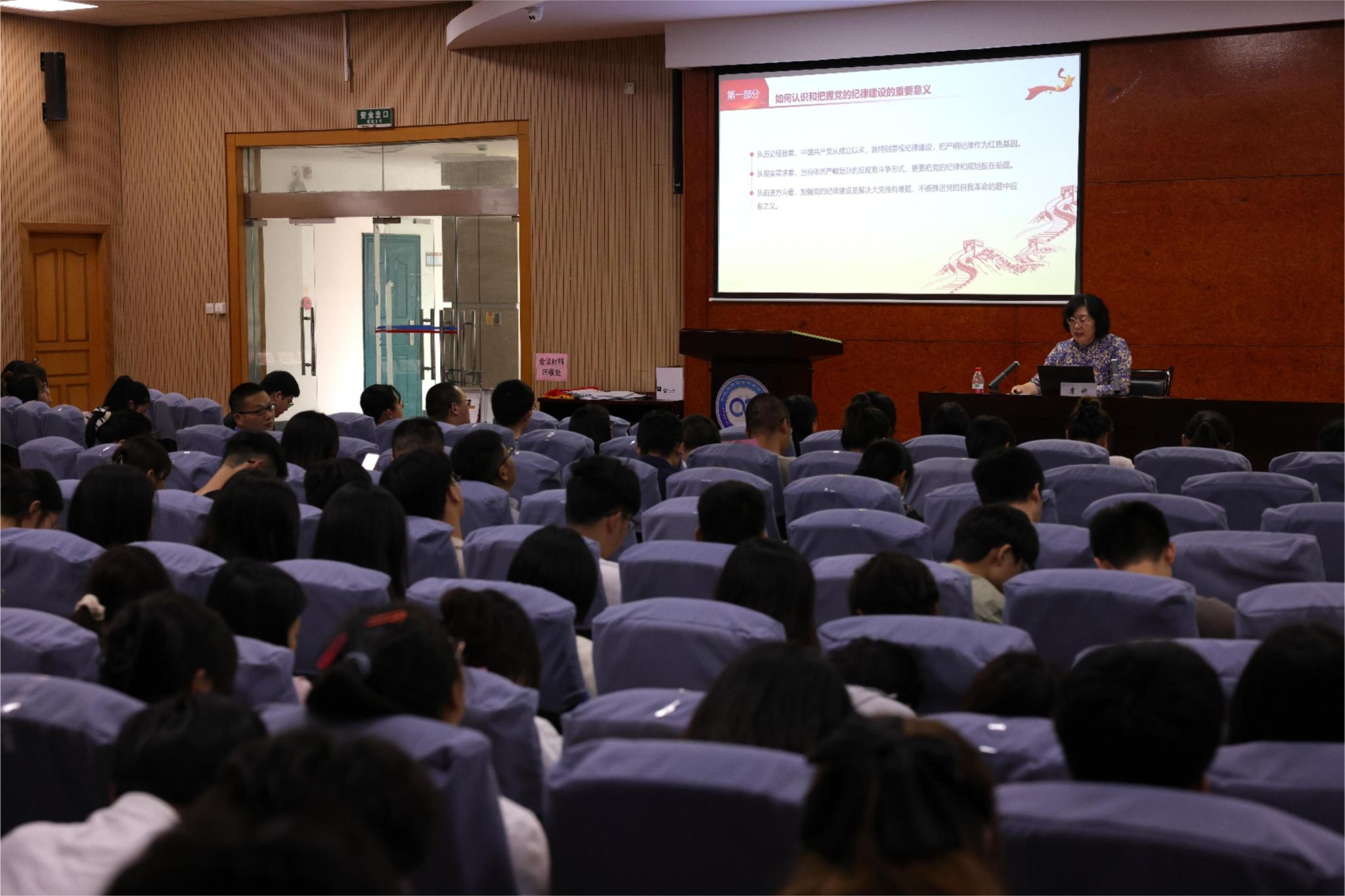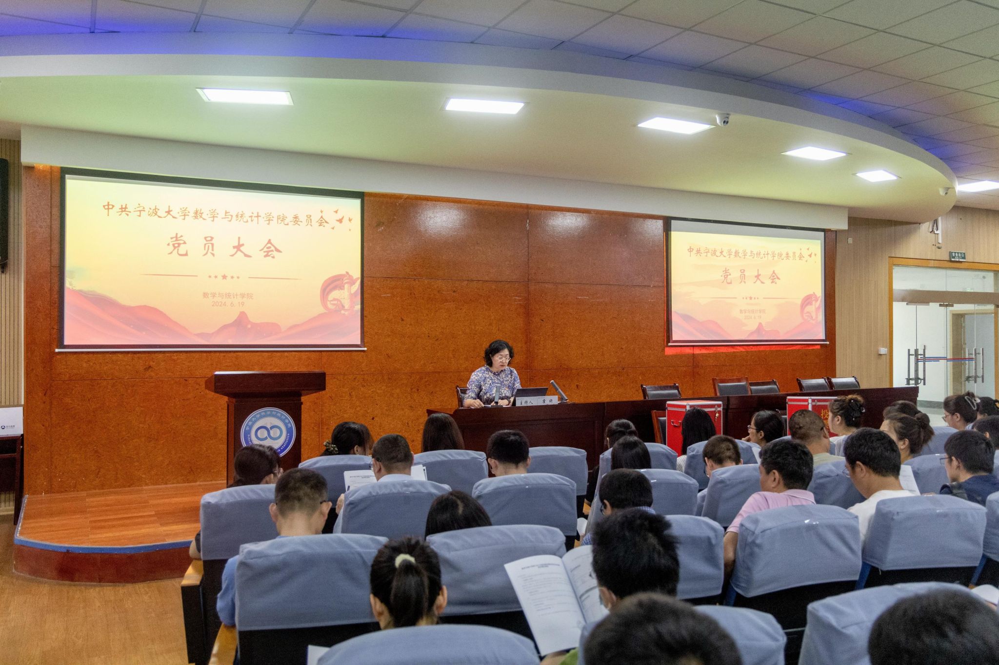 6月19日中午,中共69av 委员会第四次党员大会在包玉书9号楼317报告厅隆重举行。会议由院党委书记霍妍同志主持,学院全体师生党员参加,校考察组陈玉涓同志列席。