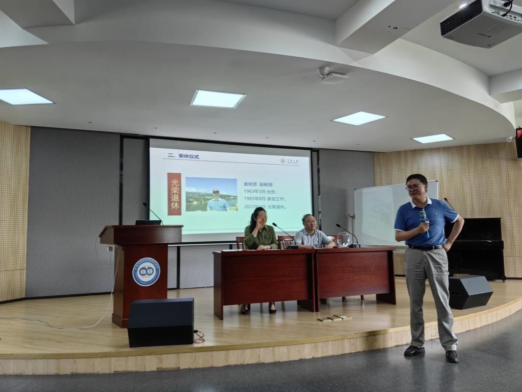 2023年6月29日,我院在113报告厅召开了教职工荣休仪式,向光荣退休的袁明贤教授致意,学院特聘院长屈长征、院党委书记霍妍、工会主席李茂华及各系主任、教师代表参加了仪式。