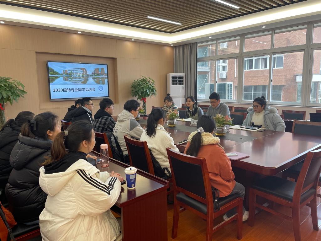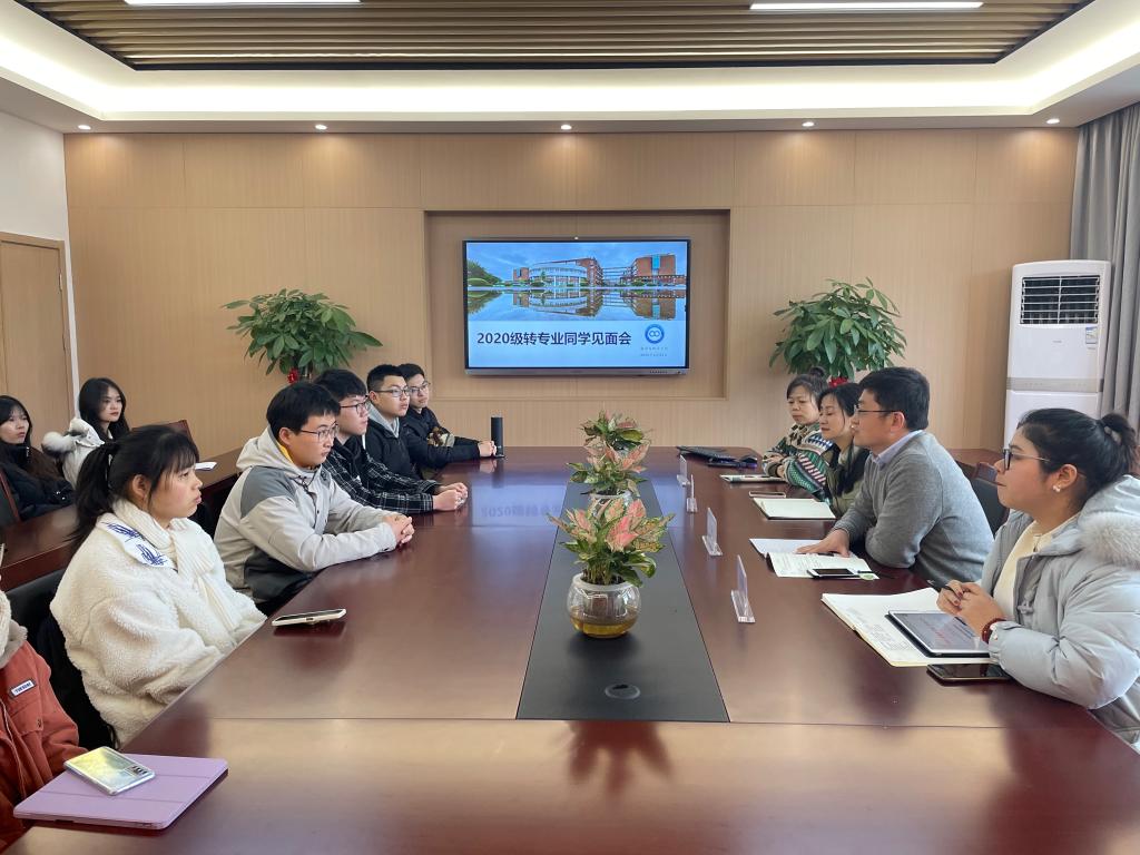 在包玉书9号楼218会议室召开转专业同学见面会。党委副书记姜萍、学工办主任张宾、教务办主任申严、团委书记陈佳雯出席见面会,11位2020级转专业同学参加本次见面会。