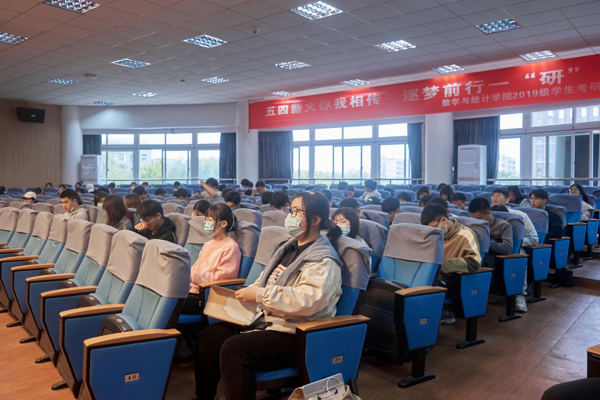 4月29日,学院组织召开“五四薪火你我相传,逐梦前行一‘研’为定”2019级学生考研动员大会。学院党委书记俞金波、党委副书记姜萍、副院长徐松、学工办主任张宾、团委书记陈佳雯出席会议,2019级全体本科生参加本次大会。
