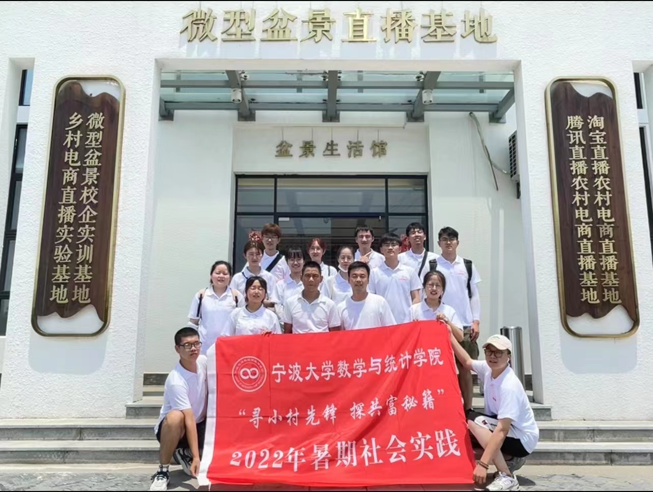 “3,2,1上链接”,闻声望去是周国军带着我们的实践队员开启了抖音直播,“家人们,看我手里这盆小香松,放在书房,客厅都是很好的选择,点击右下角的购物车,即可购买”队员们在指导下将手中的小盆景对准手机的前置摄像头。还不到一分钟这盆小巷香松便被人买下。 电商直播为虹星村集体经济带来源源不断的收入,一颗以盆景为种子长出的“致富果”在这里越尝越甜,一条以盆景为开端的“共富路”在这里越走越远。