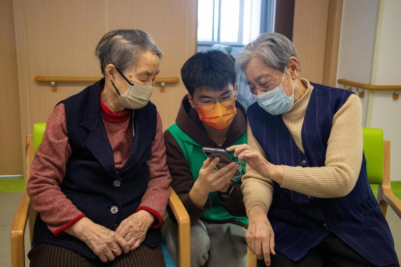 的志愿者们和宁波市镇安小学的小朋友们共同来到位于镇海区的小柏长者照护之家,开展雷锋月“智慧助老”志愿服务活动。