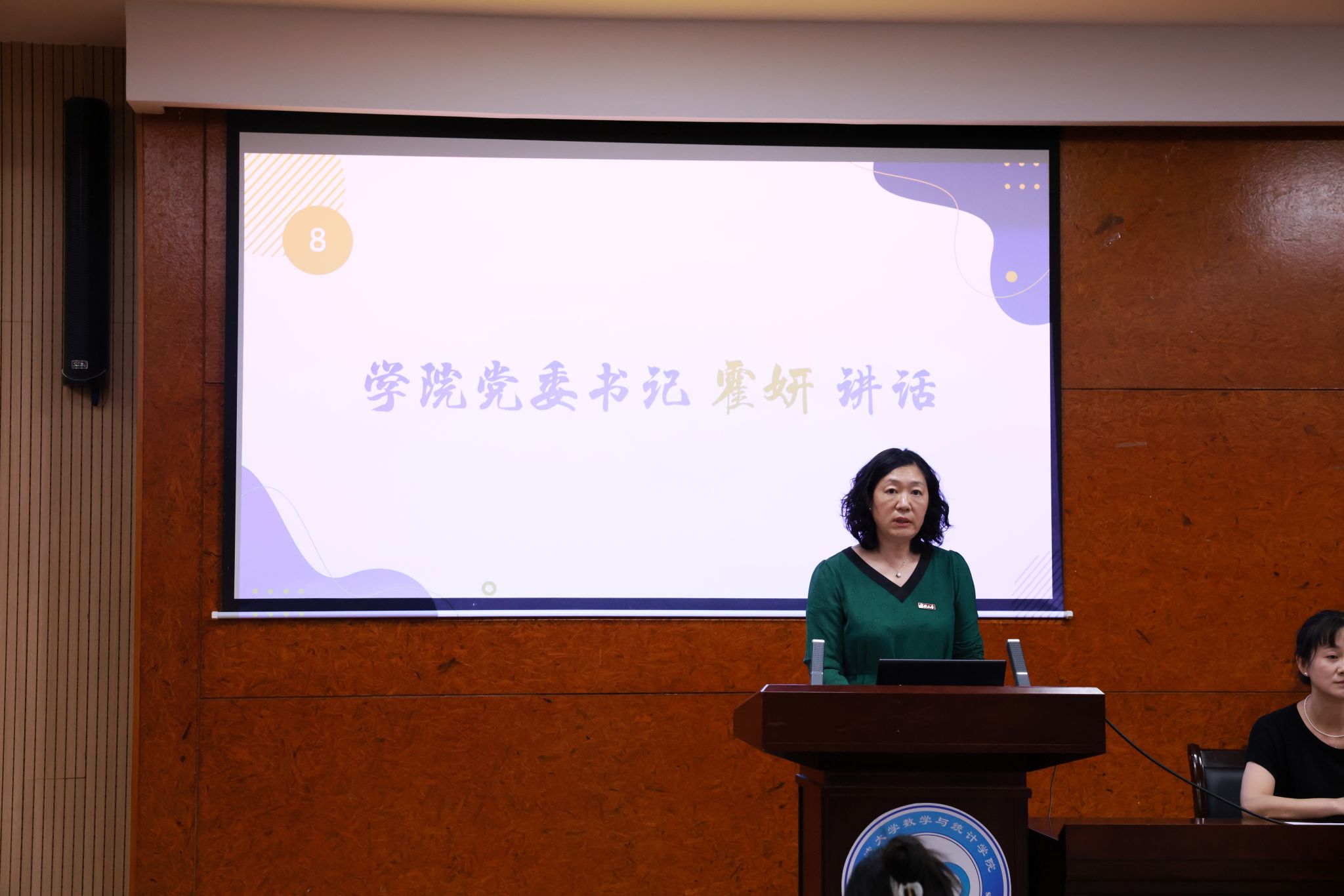 最后,学院党委书记霍妍发言表示在新时代的背景下,数学的重要性愈发凸显,同学们需明确目标,矢志奋斗,肩负起传承和发展数学科学的责任,在新时代的大潮中,用数学的力量去探索未知、解决问题、创造价值。