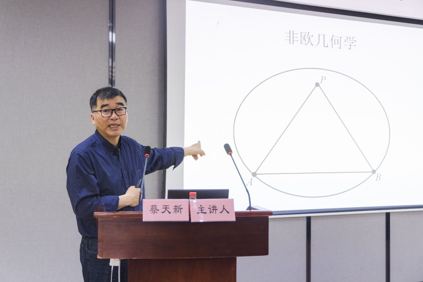 蔡教授从海亚姆的“身体世界”、“智力世界”和“精神世界”,详细介绍了他在几何方法求解三次方程以及对欧几里得第五公设的证明尝试,后一点正是非欧几何学的起点。同时,蔡教授也探讨了海亚姆《鲁拜集》的诗歌创作,这部作品已被译成多种语言,中文版首版由郭沫若翻译,至今已有十多个版本,最新版由他本人翻译。