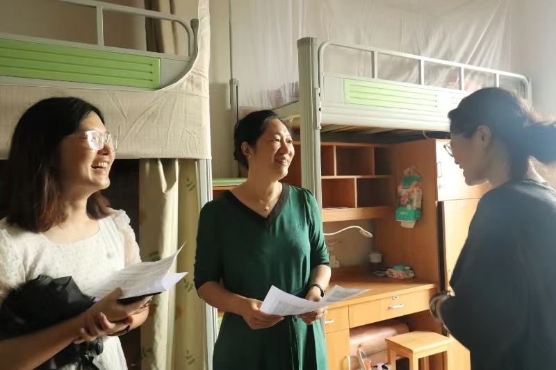 党委书记霍妍、党委副书记姜萍、学术副院长李莉、党委委员全晶晶、学工办主任吴琳华和24级研究生班主任张瑶瑶一行走访研究生新生寝室,关心新生入住情况,送上来自69av