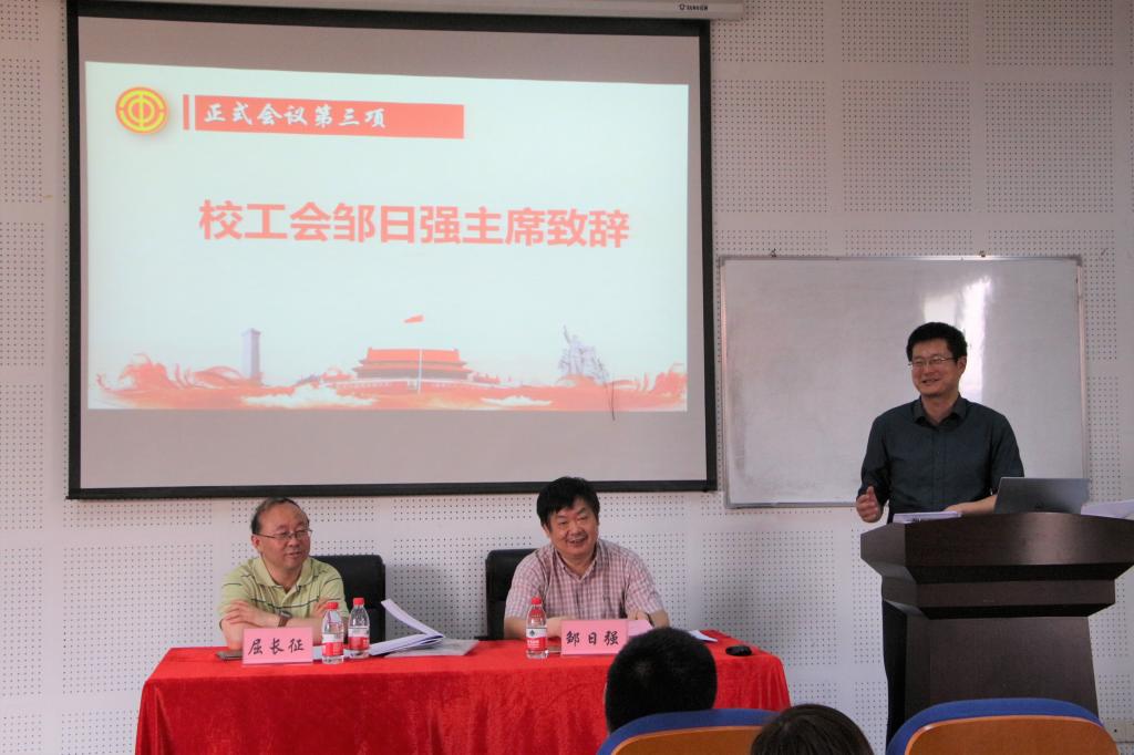 第一次教职工暨工会会员代表大会在龙赛理科楼311报告厅顺利召开。会议应到会代表39名,实到34名。校工会主席邹日强出席会议并讲话,会议由院党委书记俞金波主持。