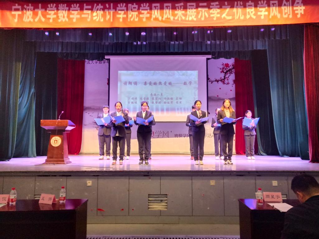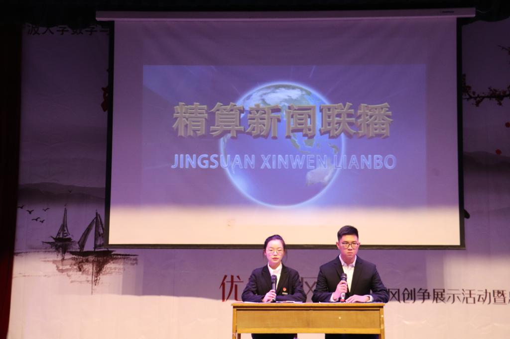 成立以来在科研竞赛、升学率、班风学风方面取得的优秀成绩。在一首悦耳的歌曲《攀登》演唱后,激烈的班级学风展示正式拉开帷幕。本次评比主要就各个班级上学年的学习成绩、学科竞赛、创新创业、英语通过率、文明寝室获奖等情况进行量化考核,并通过现场答辩和班级优良学风展示的形式展现各班的优良班风。现场答辩展示环节异彩纷呈,8个参评班级相继上台展示,有的班级通过话剧小品,有的班级通过诗朗诵和新闻播报的新颖形式,向台下师生展示了爱学好学,生动活泼的班级风貌;有的班级人均1次的公益献血,文明寝室100%的合格率,全班在高级学科竞赛中获奖等成绩无不让台下师生赞叹。