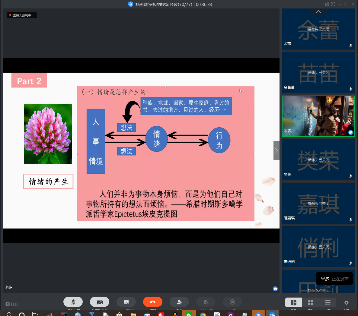 2020年研究生健康节系列活动之"身心的成长,一生的财富"健康知识讲座。此次讲座邀请了资深心理咨询师米多和体育学院体育教育训练学研究生吕泽慧担任主讲嘉宾,学院团委书记张宾和全体研究生参加收看讲座直播。