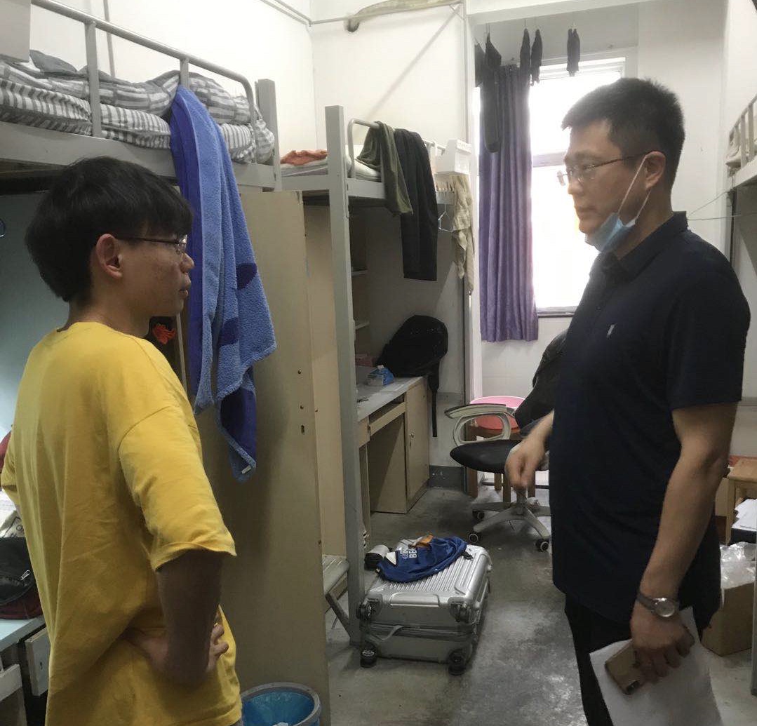 5月9日,69av 院长屈长征、党委书记俞金波、副院长胡良根、曹炜、院长助理包晓明分别前往甬江公寓、甬研公寓和本部公寓走访重点地区学生宿舍。学院领导关心学生的身体健康状况,询问学生的返校生活状态,了解学生在学习及生活上遇到的困难,同时稳定重点地区学生宿舍里已返校学生的思想情绪,让大家相信学校安排,积极配合学校防控工作,疫情总会被战胜。坚定信心、同舟共济、科学防治、精准施策,69av 将全力守护全院师生的生命健康,继续配合学校做好学生返校后的教育管理工作,切实保障疫情防控期间各项工作的顺利开展。