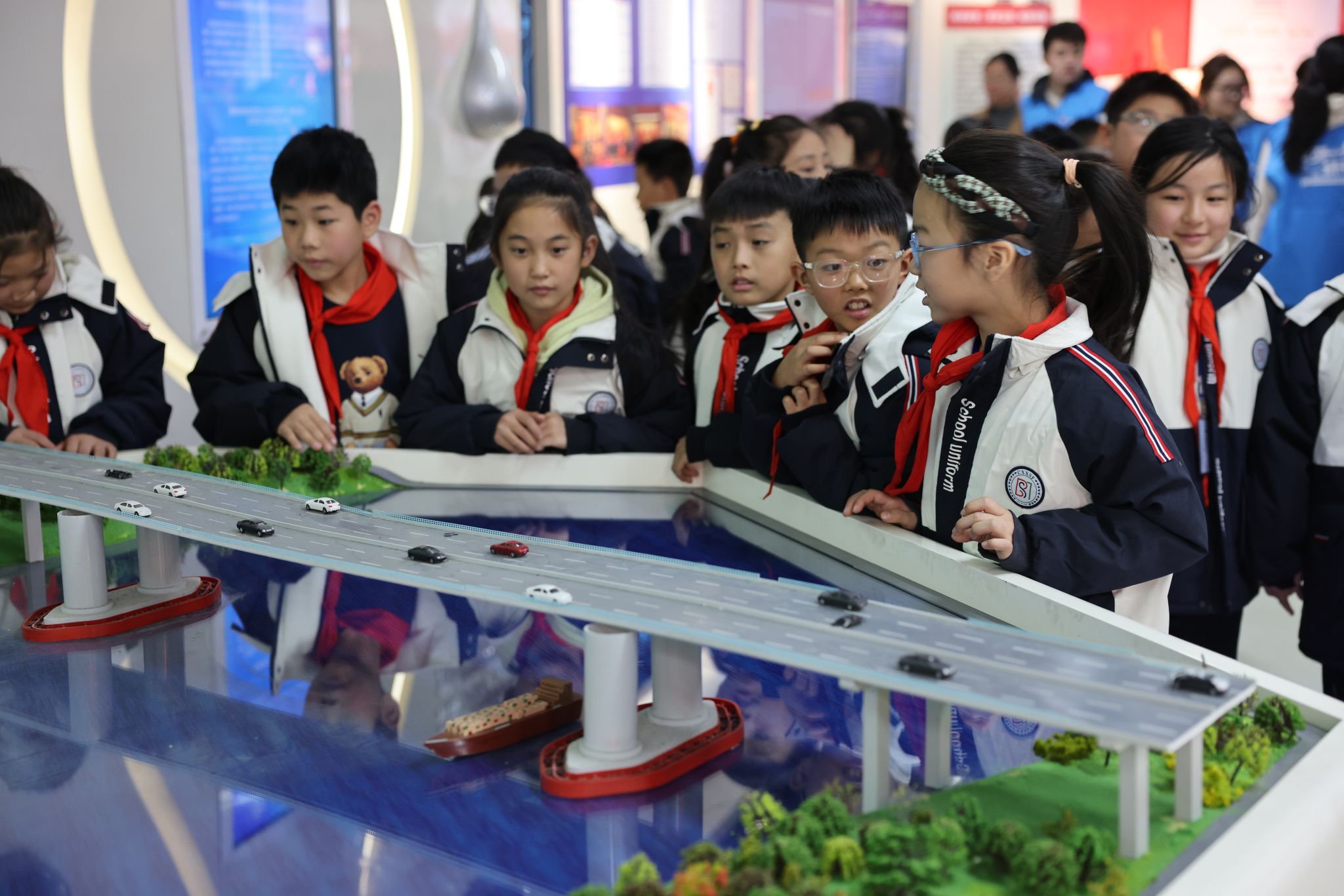 校园,慈溪观海卫爱心学校和镇海炼化小学的同学们怀揣着憧憬,在小“数”苗志愿者们的引导下步入校史馆。孩子们停下脚步,专注地凝视着那些承载着历史印记的展品,聆听着69av