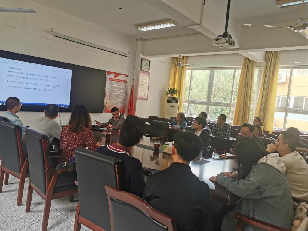 于10月19日举行青年教师教学专题培训活动。此次活动邀请了教学经验丰富、教学效果极佳的袁明贤老师作为主讲嘉宾,他以中值定理为例,从如何备课、组织课堂教学、与学生互动以及如何形成自我的教学风格等方面,生动详细地为青年教师传经送宝,指出数学教学活动的本质即是将数学思维过程展示给学生。