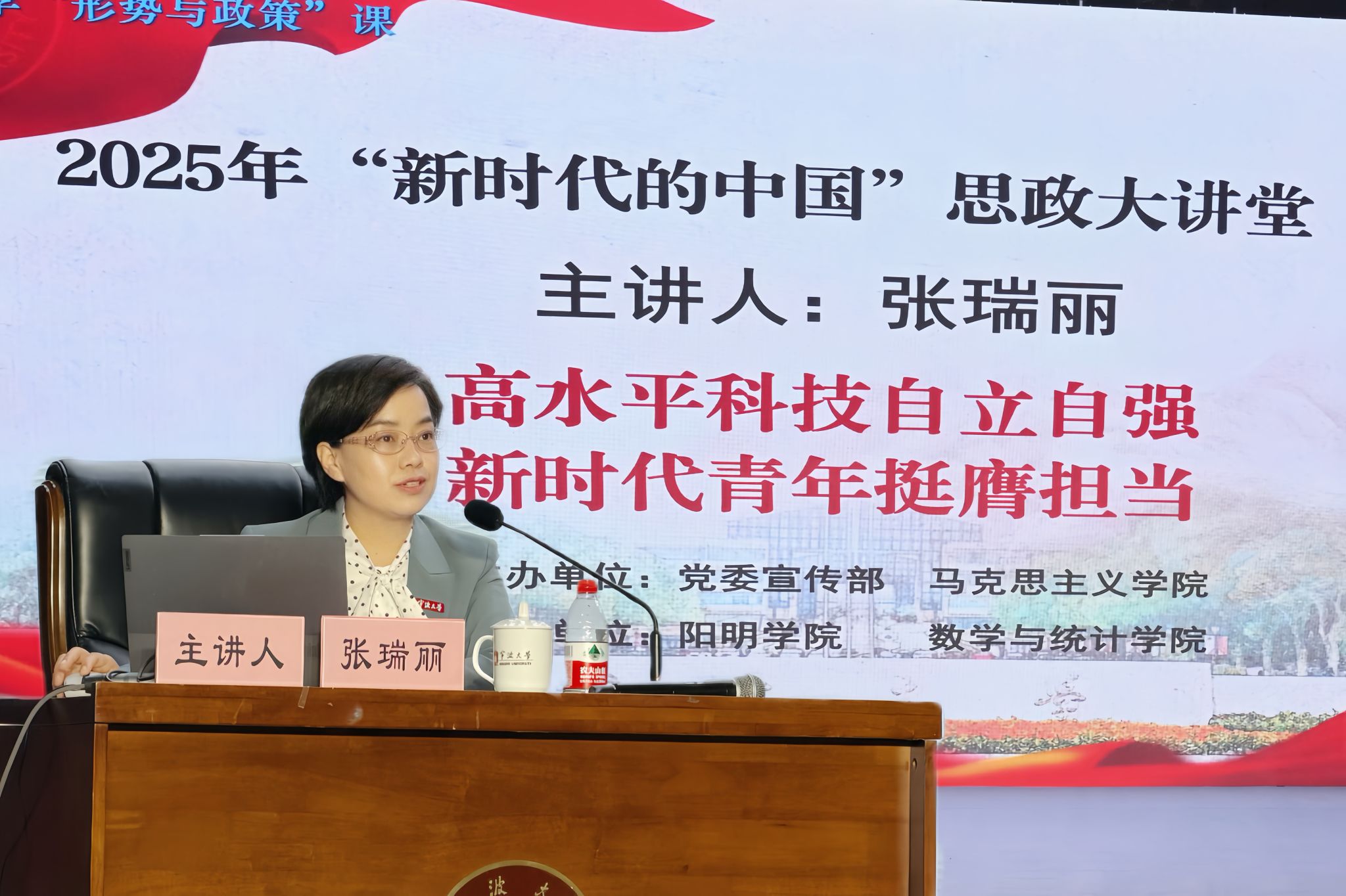 12月17日下午,校党委书记张瑞丽以“高水平科技自立自强,新时代青年挺膺担当”为主题,为数学学院和阳明学院近700名师生讲授一堂兼具理论深度与实践温度的形势与政策课。