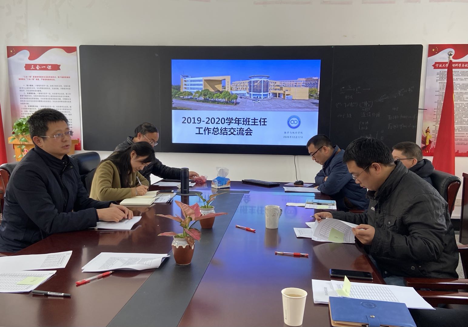 2019-2020学年班主任工作总结交流会在龙赛理科楼116会议室顺利举行。院党委书记俞金波老师、院党委副书记姜萍老师、学工办老师、教务办老师以及学院本科、研究生各班班主任参加了此次会议。会议由院党委副书记姜萍老师主持。