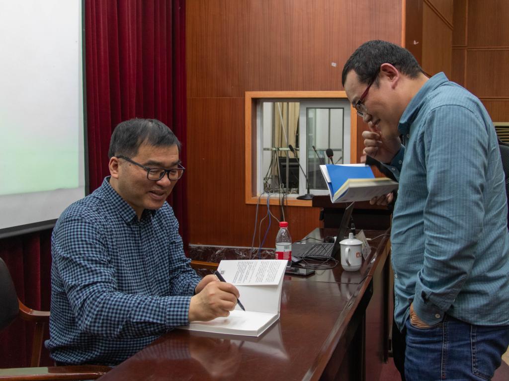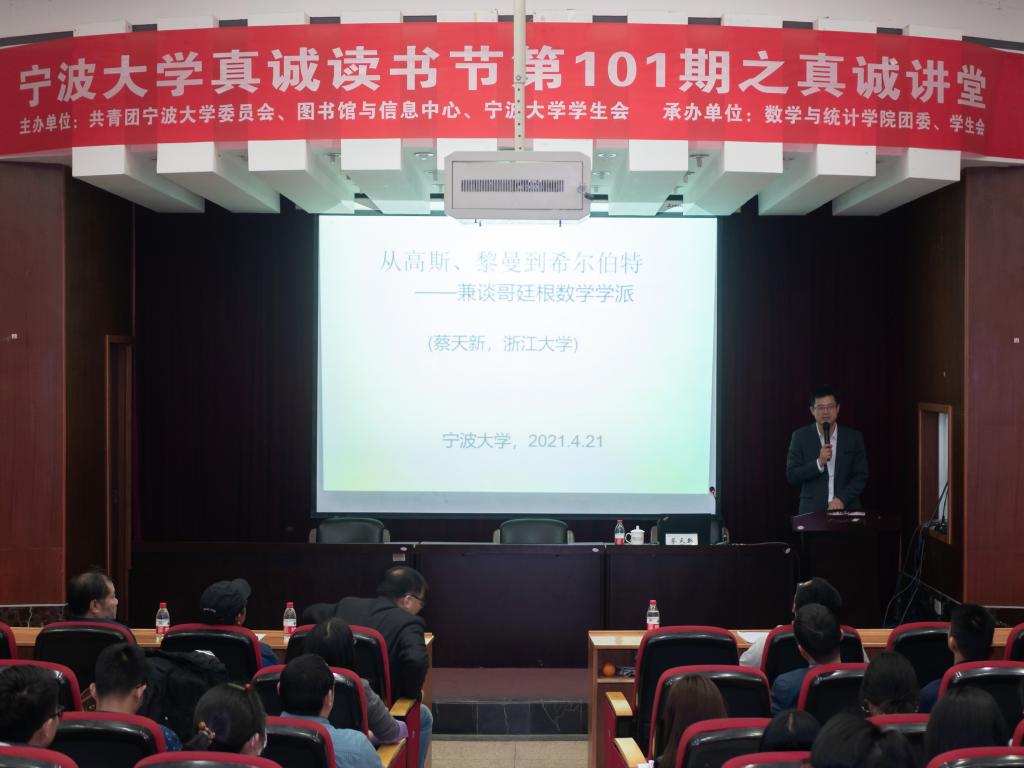 421我院邀请浙江大学数学学院蔡天新教授给学生带来高斯、黎曼与希尔伯特——兼谈哥根廷数学学派”专题讲座,讲座由院党委书记俞金波主持。兼有数学家、诗人、旅行家及摄影师多重身份的蔡天新教授,用质朴而富有哲理的语言带领在座的师生们探寻了哥廷根数学学派的奥秘向大家分享了数学与艺术相联系的创新型思维方式。