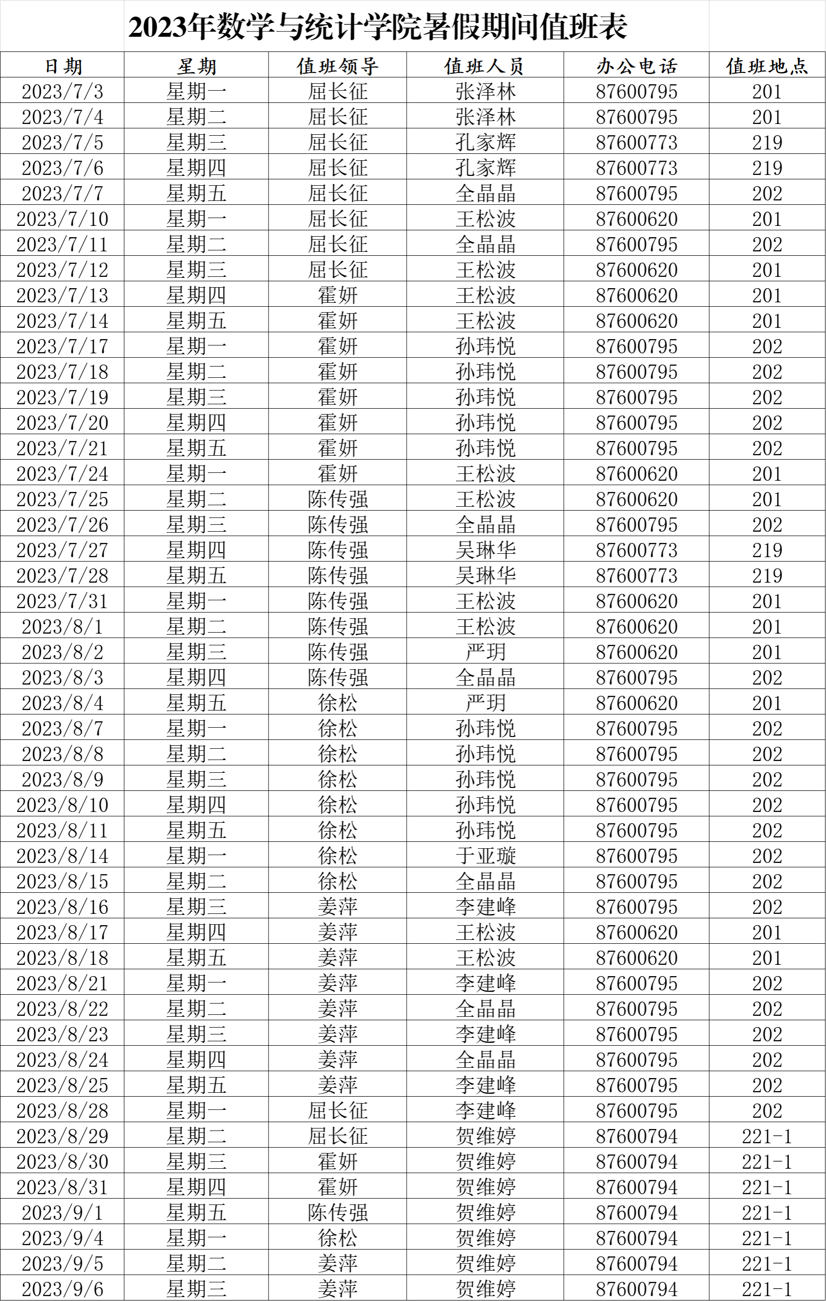 根据 “69av 校长办公室关于2023年暑期轮休及工作安排的通知”的要求,要根据“不误办事”的原则,安排好假期值班人员,确保周一至周五每天有人值班,值班时间为每天8:30-16:00。69av 2023年暑期值班安排如下: