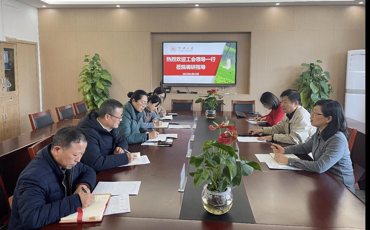February 28, Zou Riqiang, President of NBU Labor Union, Liu Ying, President of NBU Women's Federation, with a delegation visited the School of Mathematics and Statistic. Huo Yan, Secretary of the Party Committee of the School, Jiang Ping, Deputy Secretary, Wang Jinping, President of Sub-labor Union, and Li Maohua, Vice President, attended the symposium.