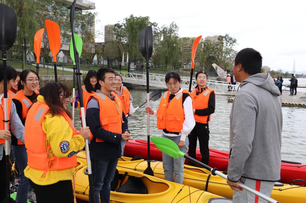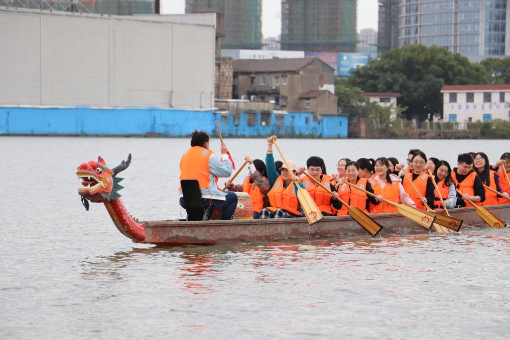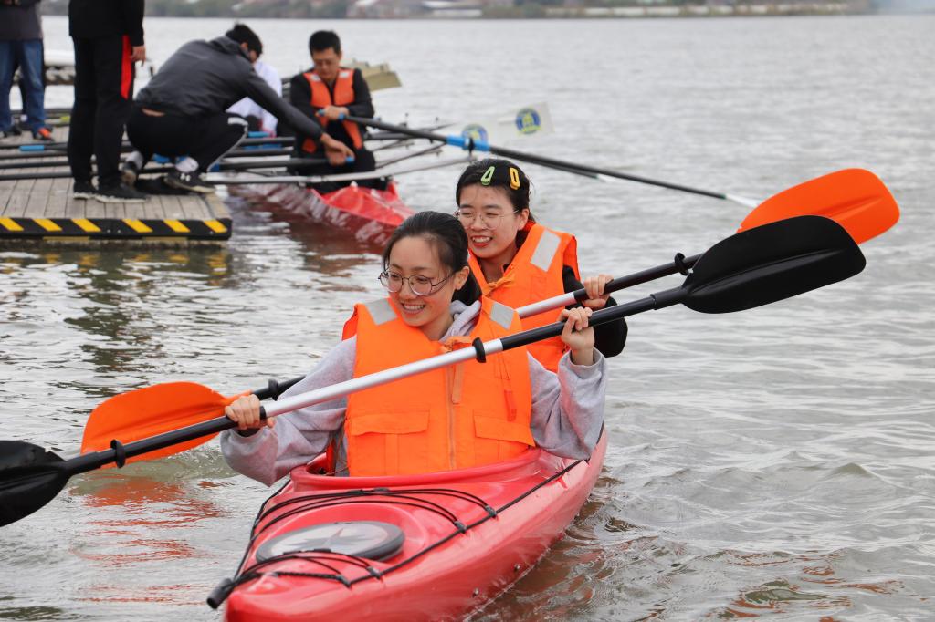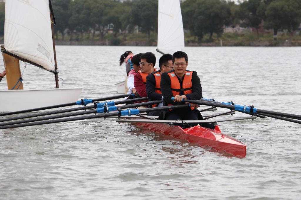 作为培养选拔高水平竞技体育后备人才的重要基地,宁波市水上运动学校场地辽阔,设备完善,项目多样。全体党员同志在参观学校的同时,敢于挑战,克服恐惧,突破自我,纷纷下岸体验了皮划艇、赛艇、龙舟等项目,在实践中体悟运动员们顽强拼搏、永不放弃的精神。部分党员登上练习舟,在教练的指导下学习击鼓、划桨等技术动作,相互信任、通力合作,顺利完成龙舟项目,亲身体验心往一处想、劲往一处使的龙舟精髓。