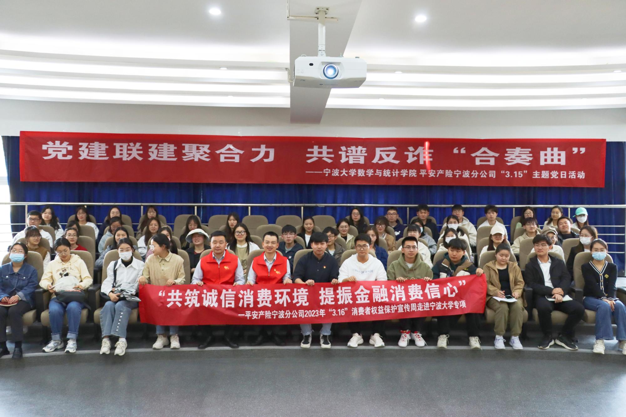 党委联合平安产险宁波分公司党委,开展以“时刻绷紧防范之弦,严防电信网络诈骗”为主题的党建联建活动。活动由学院党建辅导员孔家辉主持,平安产险宁波分公司丁立柯、魏国胜及学院部分师生党员、积极分子参加活动。