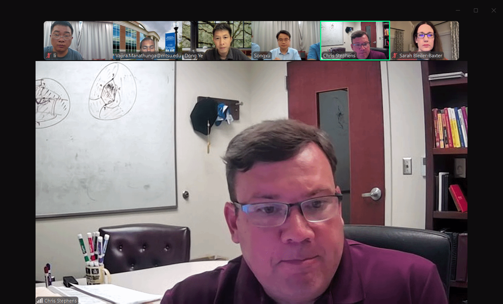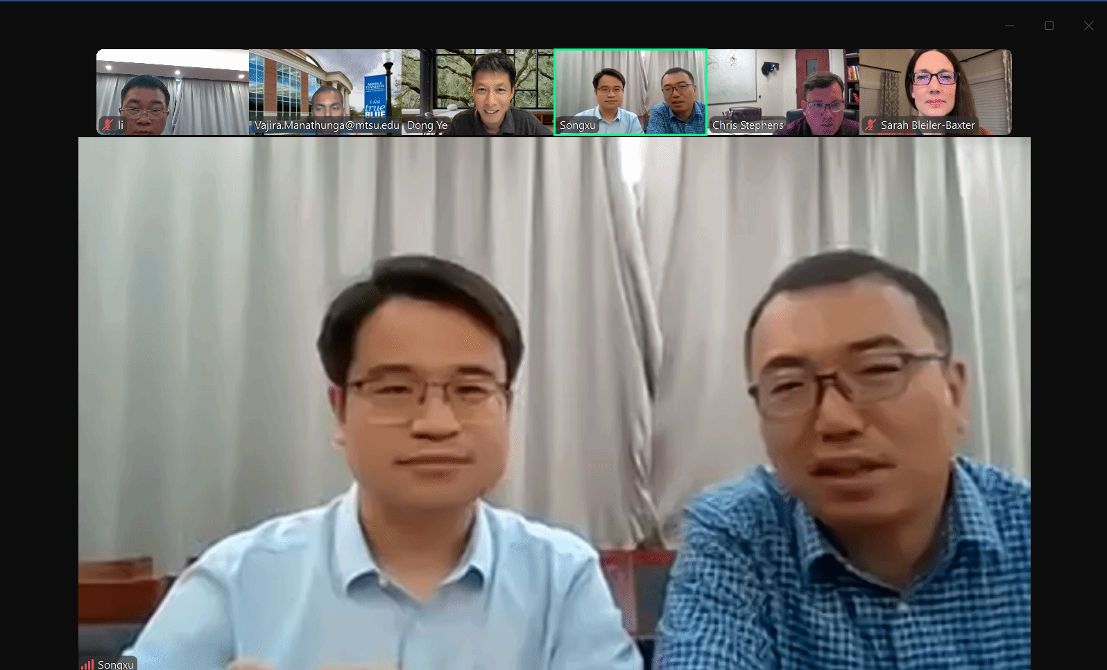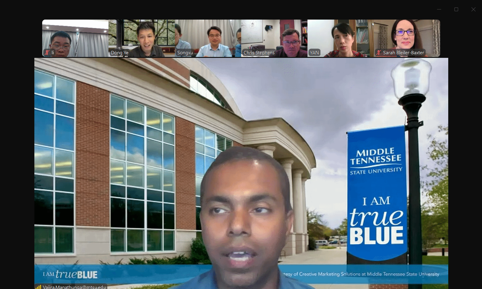 国际合作与交流处颜静意、精算科学中心主任王伟、副主任李建峰以及核心课程教师张莉楠;美方代表包括中田纳西州立大学基础应用学院副院长Sarah Bleiler-Baxter、数学系主任Chris Stephenson、精算中心代理主任Vajira Manathunga及数学系Dong Ye教授。