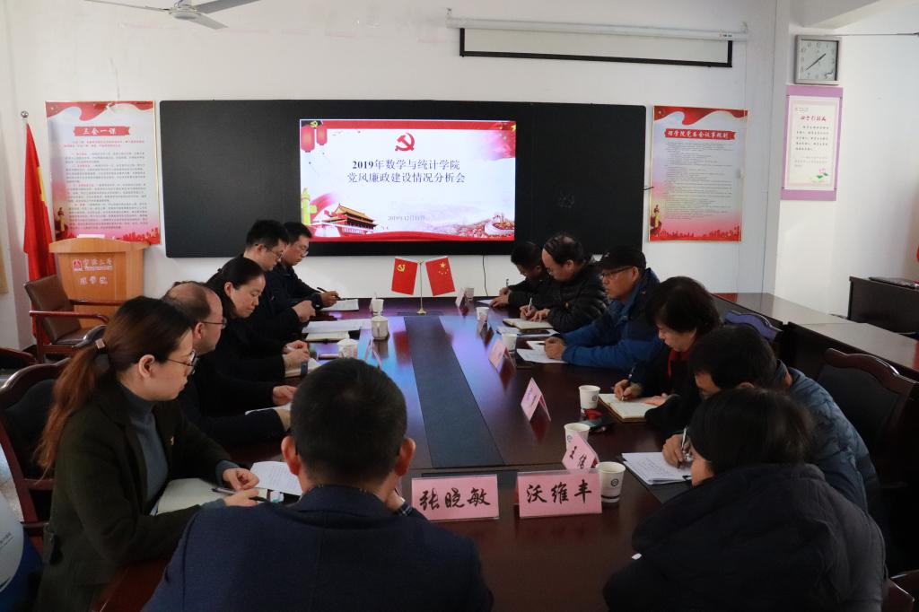 12月11日,69av 召开2019年党风廉政建设情况分析会,院党委书记俞金波主持,全体党政班子成员、纪委班子成员和教师党支部书记参加,学校党委组织部部长胡敏出席。