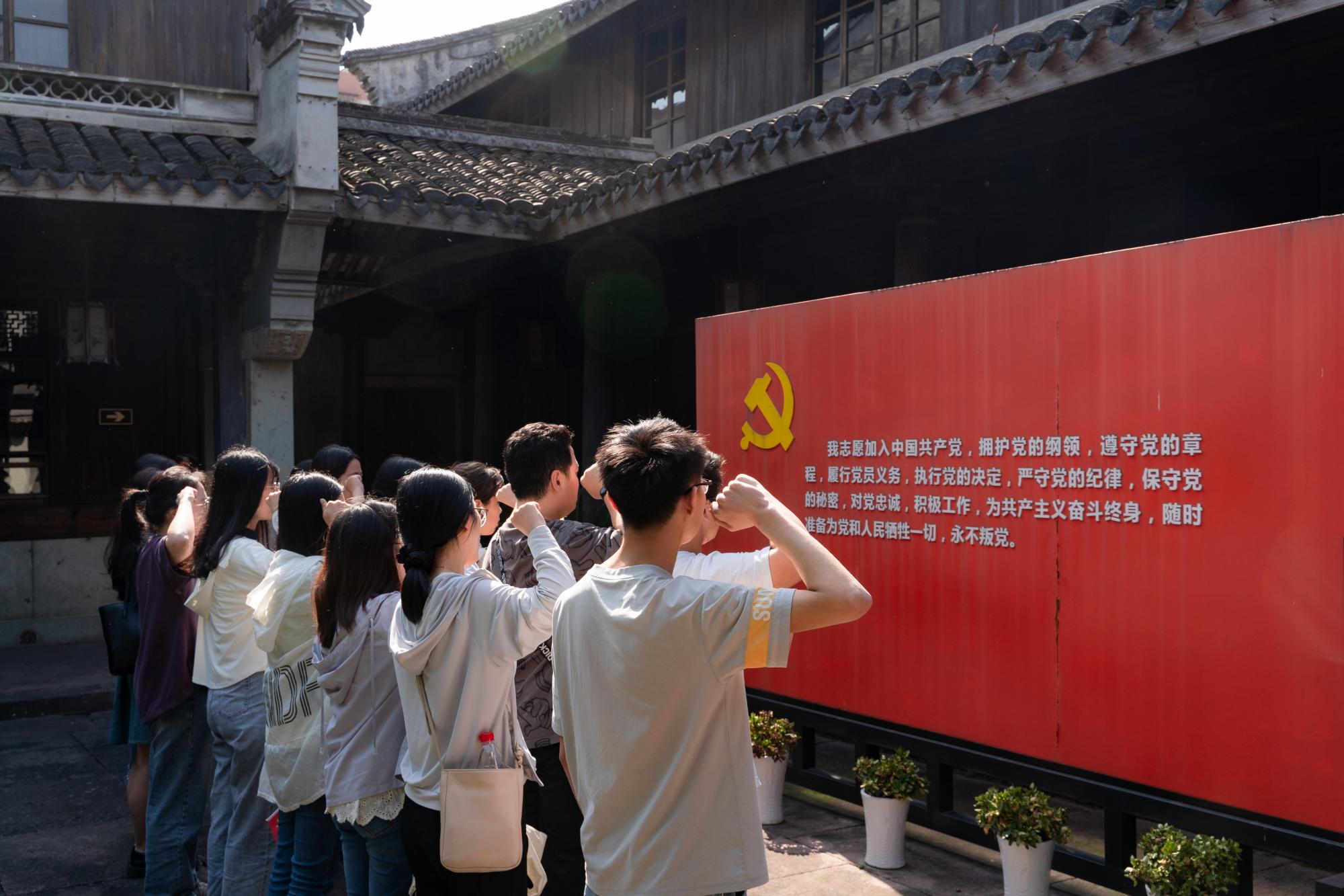 参观前,全体党员重温了入党誓词,在铿锵的誓言中,师生党员们的初心受到洗礼,理想信念更加坚定。